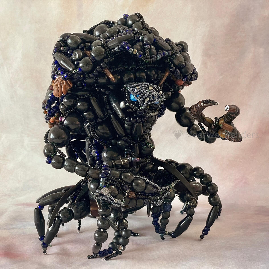 Your sculpture will be rendered in high detail with many beads of different sizes, colors and materials to emphasize texture. The sculpture will be made with some maneuverable parts for posing.Ideal for complex creatures, fanart and OCs.